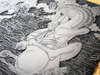 Zoom in of NOT SO VEGAN, 2018, linocut on paper, 34 x 49 cm