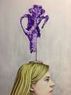 There are plenty of references to art history: an object is placed on the artist’s skull, it’s a disturbing self-portrait for the spectator. Is it a flower, a jewel or a sculpture? In reality, it's a dog's skull as a reference to time that is passing by. Suddenly, we are surprised by this vanity and we remember that our time is limited on earth. These profile portraits refer to German and Italian painters: Holbein and Piero de la Francesca. The enigmas are hidden subtly in the work of Olivia Etienne, they are there to question us about our existence or simply on the deep meaning of the artists work.