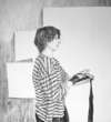 Olivia was my art school mate for several years at HEAR in Strasbourg and we remained good friends: her drawings and paintings are a mixture of strength and lightness, control and poetry, transparency and realism. In her works, we can find figurative shapes that look like portraits, bodies, and clothes. These are elements of our daily life, which belong to us and which are part of the décor that surrounds us. We can see a striped long-sleeved sweater, this well-known French marinière, drawn by the hands of Olivia with an impressive precision in the details. Olivia has a serious and meticulous temperament and we can see it in her extremely precise technique. And if we take a closer look to the details in her works, we begin to lose sight.
