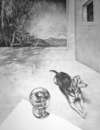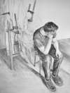 Pierre dans l'atelier, fusain sur papier, 170 x 130 cm, 2018